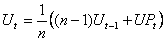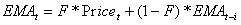 The EMA formula is an inductive formula; that is, the value at time t is based on the value at time t-1 and a current amount. The formula is