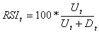 Indicates the degree of positive and negative movement by the stock on a scale of 0 (weakest) to 100 (strongest). Determined by figuring the ratio of the average up closes for the last 14 days (using today's current price for the 15th day) divided by the sum of the average up closes and the average down closes for the same period. This ratio is multiplied by 100. You can change the number of periods used in the calculation from the default of 15, and you can overlay the study on or underneath the price chart.