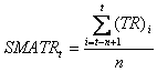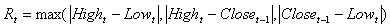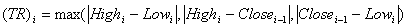where TR is the largest of the absolute values of | High-Low |, | High-Yesterdays Close |, and | Yesterdays Close-Low |. |