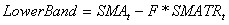 Keltner Channels consist of two bands that are not equidistant from the SMA. Rather than two bands that are always an equal percentage away from the SMA, Keltner Channels expand and contract based on a moving average of the True Range (TR). The formulas for the upper and lower bands are