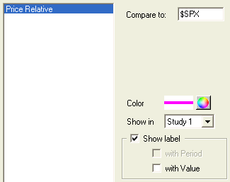 Compares the performance of the symbol currently loaded in the chart to the symbol specified in the studies settings window.