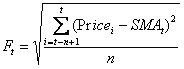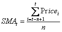 The average of the last 8-periods close values including current day. If current trading session hasn't closed yet, the last sale price is used. The default of 8 periods can be changed. The formula for an n-period SMA is |