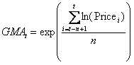 A moving average weighted on the price movement relative to the stock price, so that a $1 increase in a $5 stock is represented on the chart as a much greater move than a $1 increase in a $75 stock. The formula for an n-period GMA is |