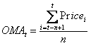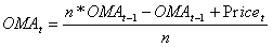 The initial value of an n-day OMA is the same as the initial value of an n-period SMA indicator. Subsequent values are determined using an inductive formula, in the manner of the EMA described above. The formula for the initial value of