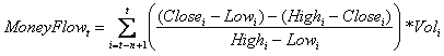 Money Flow keeps a running total of the money flowing into and out of a security. The direction of the Money Flow line is the important component to watch, not the actual dollar amount. This indicator can be used to confirm underlying strength or weakness of a price trend.