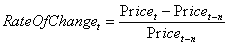 Change in price between the current price and the close 5 periods ago, divided by the price 5 periods ago. You can change the number of periods used in the calculation, and you can overlay the study on or underneath the price chart. The formula for an n-period Rate of Change is 100*( |