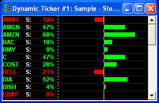 Selecting this feature will allow you to load a previously saved Stock List into your Dynamic Ticker. Display up to 50 symbols in each Dynamic Ticker window. |